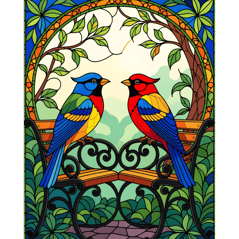Glas in lood vogels Diamond Painting